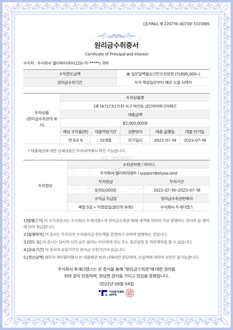- Collateral Address 1: 659 Majeon-dong, Seo-gu, Incheon
